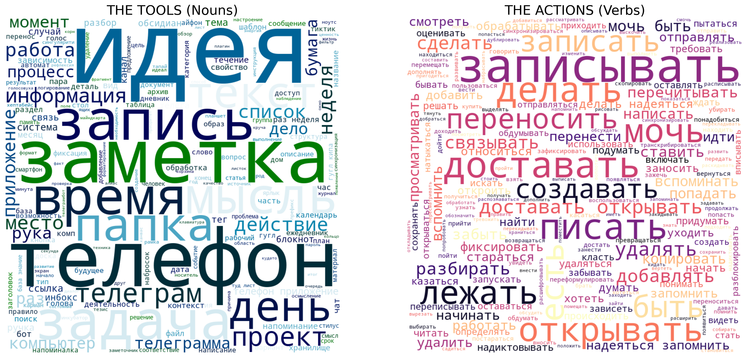 - Зачем нам это нужно: без подобной «чистки» подсчет глаголов и объектов действий (напомню, мы пытаемся понять, что такое заметковедение и с какими действиями оно ассоциируется) будет невозможным, мы просто размоем данные разговорными словечками и ничего не узнаем.